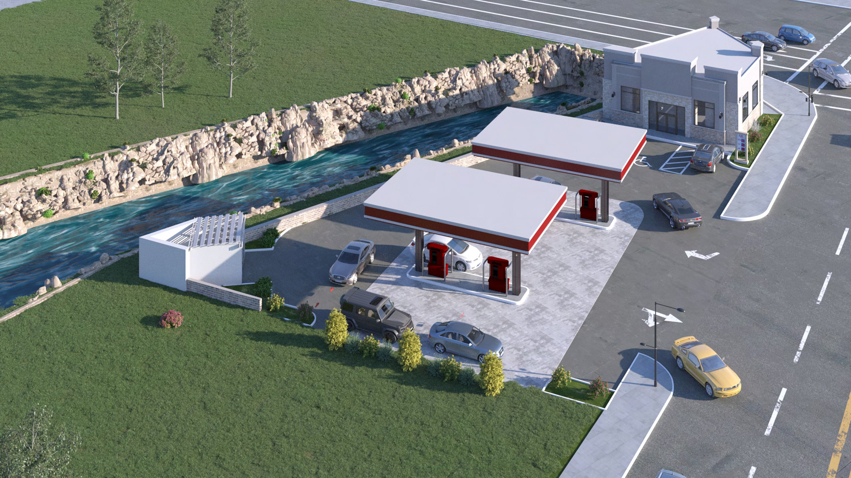 Dual-concept plans in hand — developer can choose between a traditional gas station/mini mart or a forward-looking EV charging hub, reducing pre-development time and cost